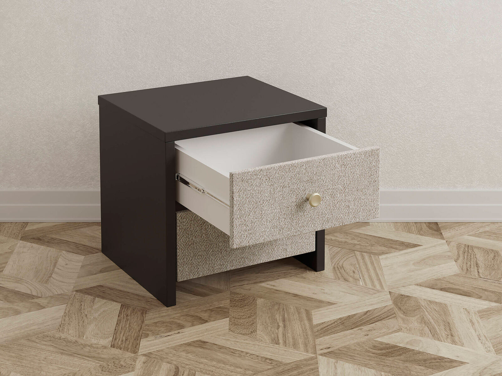 Прикроватная тумба с выдвижными ящикам сочетается с любыми моделями кроватей. Прямые углы, лаконичные металлические ручки, увеличенная толщина плиты ЛДСП 25 мм. Шариковые направляющие без доводчика. Фасады выдвижных ящиков выполняются в любой ткани на выбор. Стильная и практичная тумба прекрасно дополнит собой как кровать в полностью мягком исполнении, так и для комбинированных моделей из мягкого изголовья с ламинированными царгами.