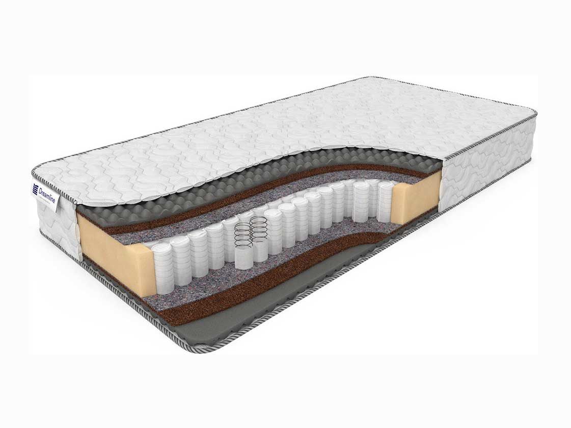 Наполнитель из бикокоса создает жесткую поверхность. Этот долговечный материал получают из сочетания натурального кокосового волокна и струттофайбера. За счет своей структуры, материал повторяет изгибы тела, избегая сильного давления на кровеносные сосуды. Следом, по обе стороны, кладется инновационный материал Massage Memory (с эффектом памяти). Он расположен под чехлом, поэтому хорошо ощущается его рельефная поверхность, которая имеет микромассажный эффект.