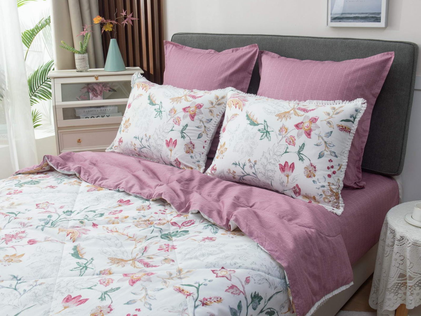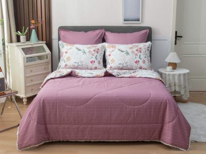 В комплекты комфортеров с одеялом Бернадетт входят наволочки, простыня и легкое всесезонное одеяло. Оцените это современное и очень удобное решение, которое идеально подходит тем, кто не любит возиться с пододеяльниками.