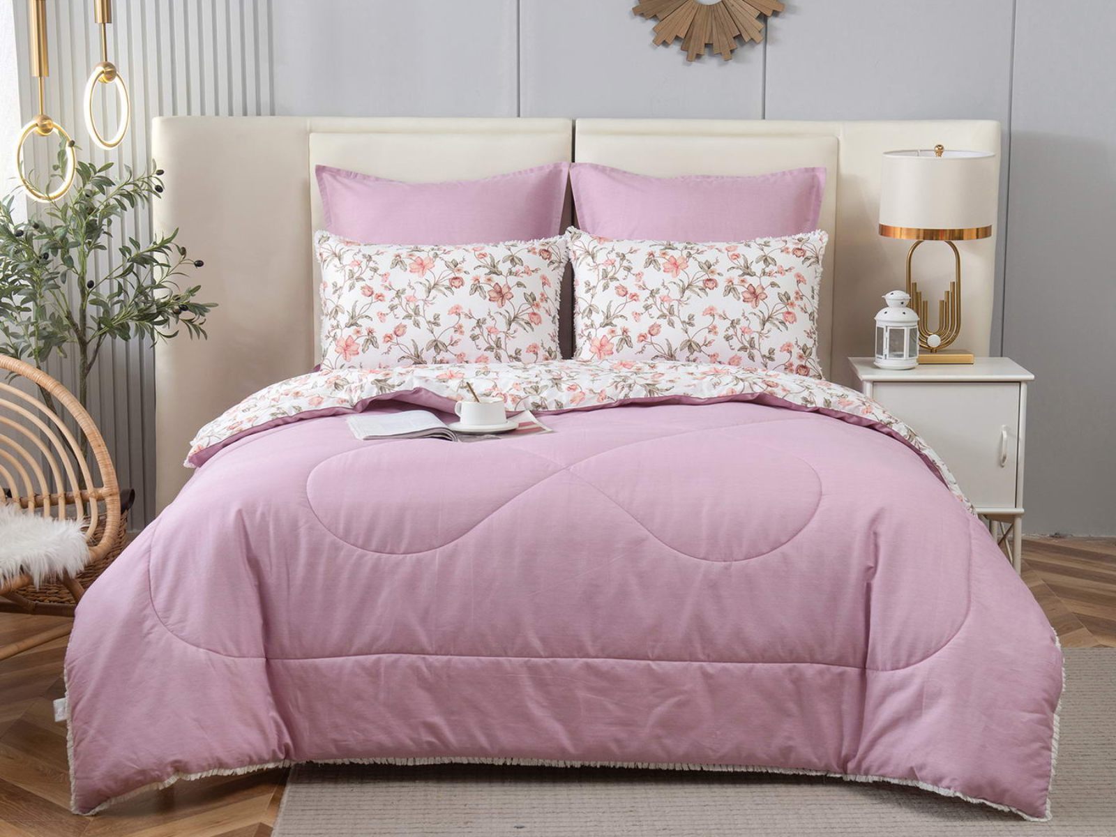 В комплекты комфортеров с одеялом Бернадетт входят наволочки, простыня и легкое всесезонное одеяло. Оцените это современное и очень удобное решение, которое идеально подходит тем, кто не любит возиться с пододеяльниками.