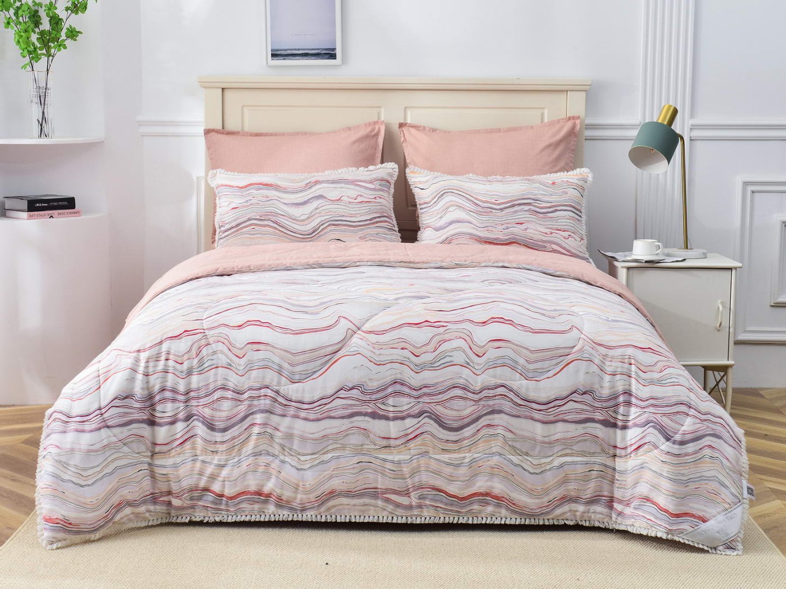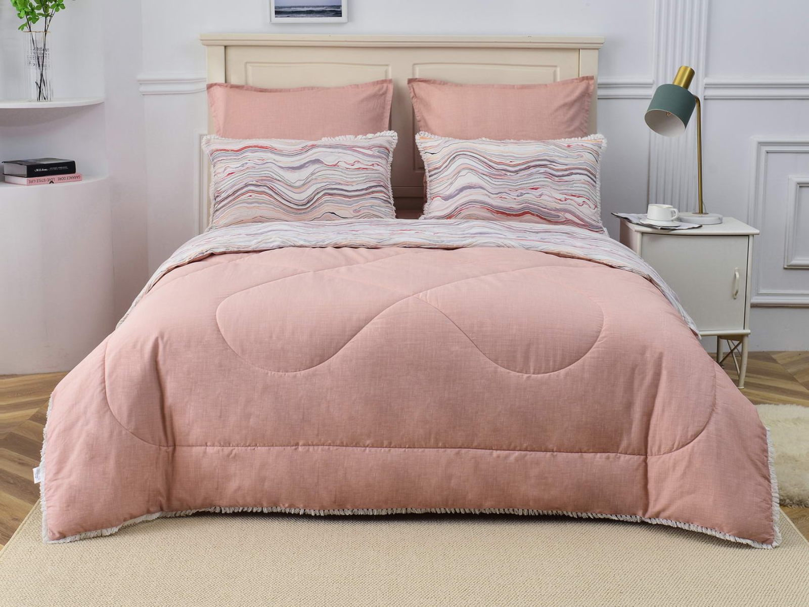 В комплекты комфортеров с одеялом Бернадетт входят наволочки, простыня и легкое всесезонное одеяло. Оцените это современное и очень удобное решение, которое идеально подходит тем, кто не любит возиться с пододеяльниками.