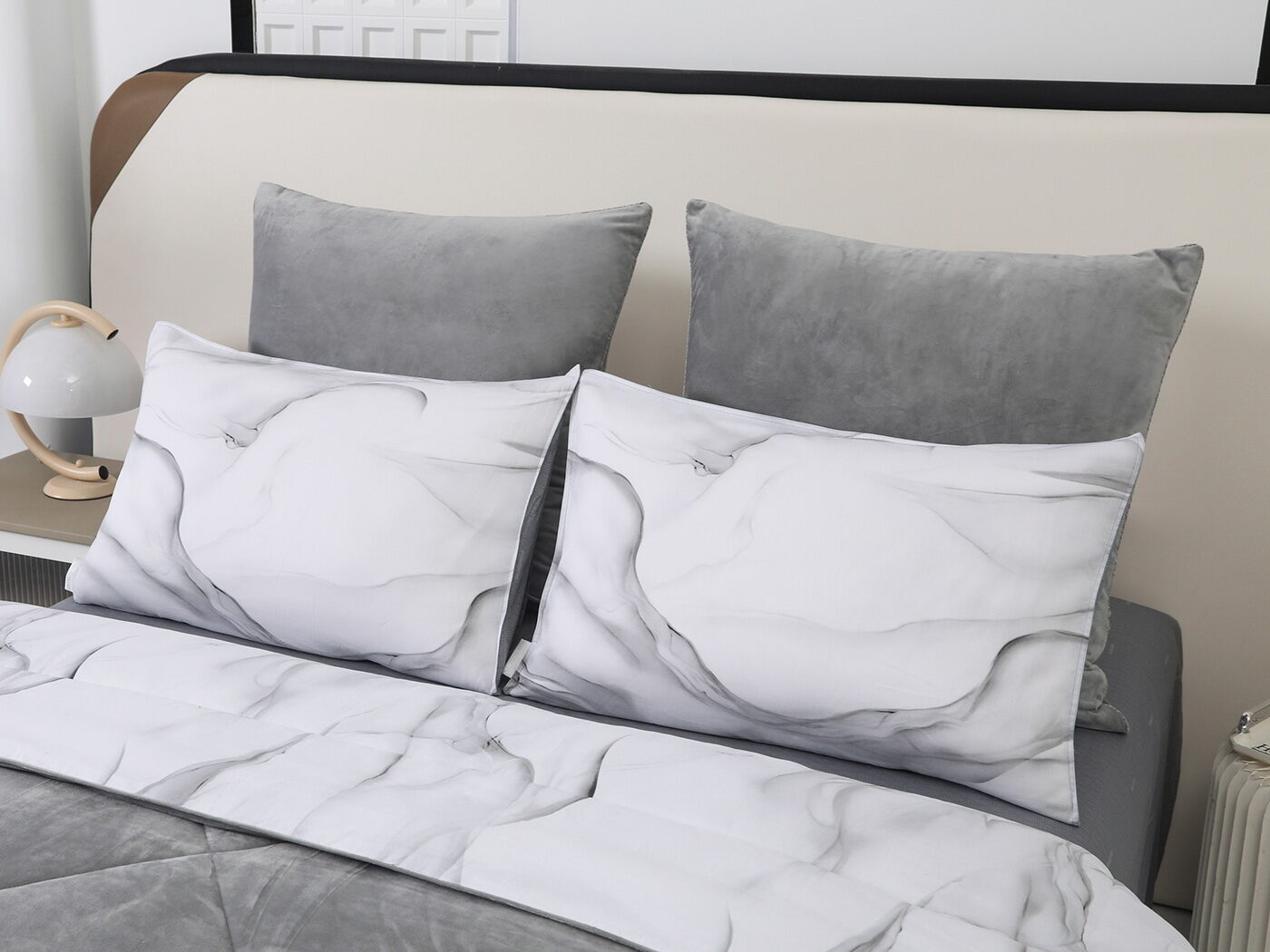 Обратная сторона одеяла – принтованный сатин натуральный хлопковый материал. На ощупь нежная и шелковистая, при этом комфортная и прочная ткань.