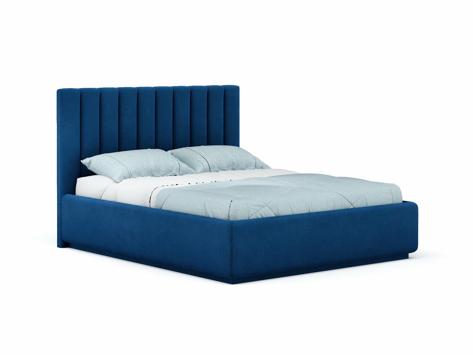Кровать с мягким изголовьем, выполненным в виде 10 вертикальных панелей (вертикальная утяжка, всегда 10 шт независимо от размера спального места, с увеличением размера спального места увеличивается ширина панели), отличный вариант для спален с низкими потолками: вертикальный полосы на изголовье визуально вытягивают пространство.