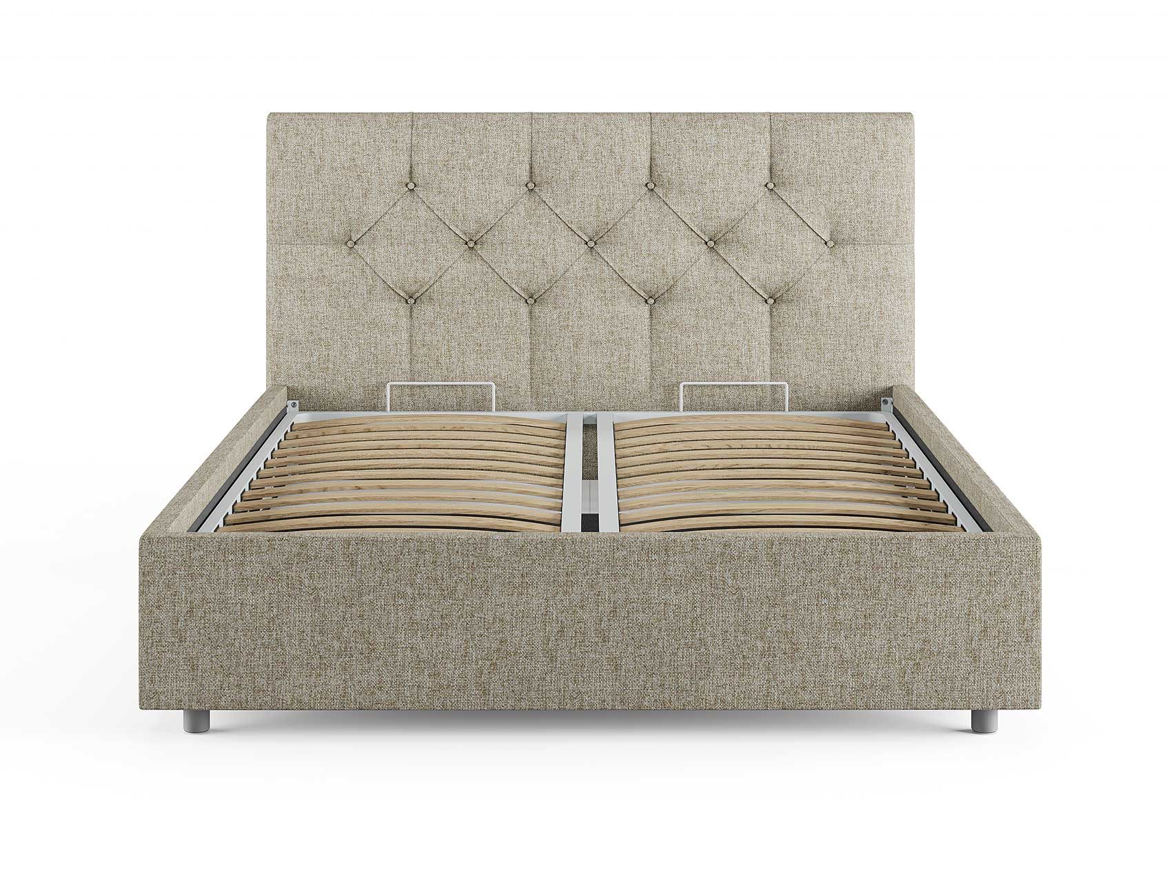 Кровать комплектуется металлическим основанием и подъемным механизмом со вместительным бельевым ящиком. Дно бельевого ящика легко сдвигается для обеспечения уборки под кроватью.