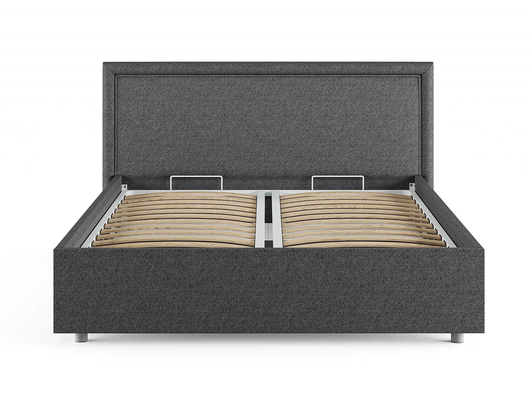 Кровать комплектуется металлическим основанием и подъемным механизмом со вместительным бельевым ящиком. Дно бельевого ящика легко сдвигается для обеспечения уборки под кроватью.