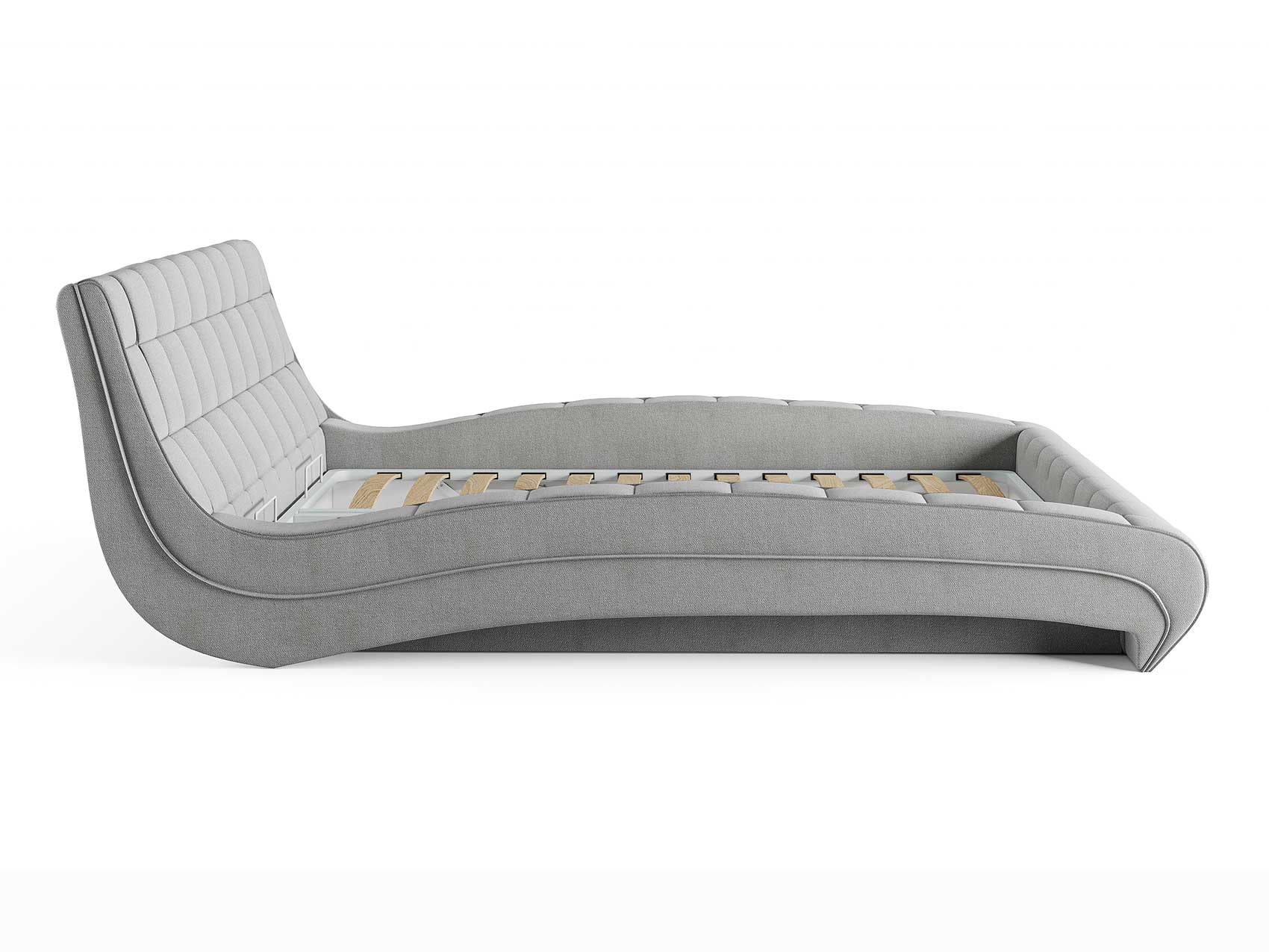 Кровать комплектуется металлическим основанием (без опор), которое имеет 13 рядов встроенных березовых ламелий на каждое спальное место, обеспечивая равномерное распределение нагрузки.