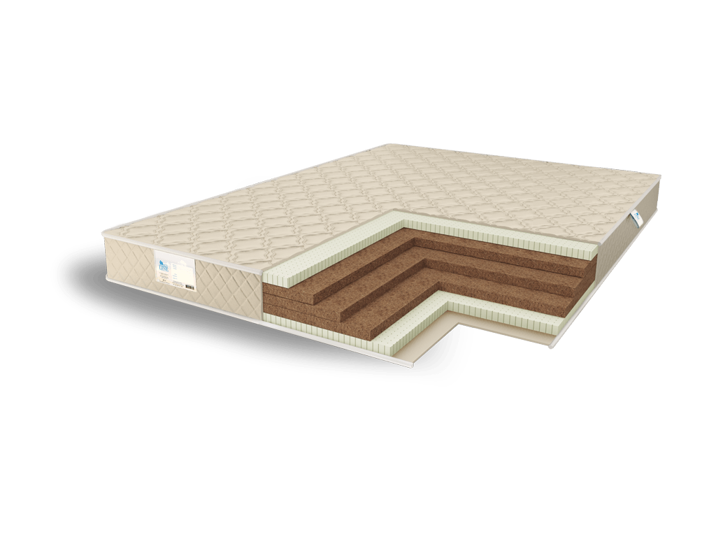 Базовым слоем для матраса служит кокосовая койра. Её здесь установили сразу 9 см. Сверху снизу от неё расположились по 3 см натурального латекса. Такая структура даёт матрасу упругость и ортопедичность, но и что немаловажно – адаптивные и комфортные спальные поверхности.