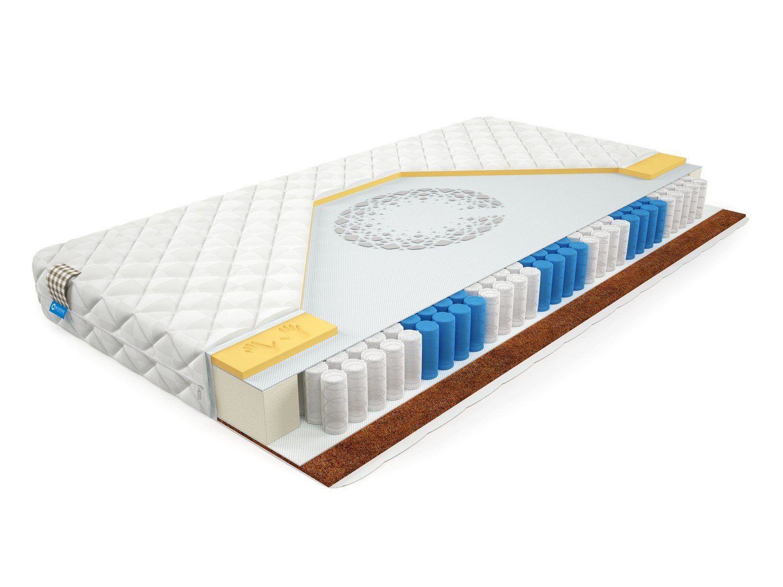 Матрас BioCrystal Duet XL - недорогой матрас с эффектом памяти. Матрас c ортопедическим эффектом на основе семи-зонного пружинного долговечного блока независимых пружин SIlverSpringPocket 7 zone. Данный блок насчитывает 580 металлических пружин на одно спальное место, это оптимальное количество пружин для бюджетного матраса. 7 зональный пружинный блок SSP 580 значительно прочнее обычного блока независимых пружин, и имеет большее количество витков, что, в свою очередь, лучше сказывается на упругости матраса и качестве сна. Матрас насчитывает семь зон жесткости и правильно повторяет изгибы позвоночника во время сна или отдыха. Комфорт матрасу придают 2 сантиметра материала с эффектом памяти Memory Foam (пена памяти) – это полиуретан с дополнительными добавками, увеличивающими его вязкость и плотность. Благодаря специальной структуре, состоящей из множества ячеек, этот материал адаптируется под форму человеческого тела. Под действием веса и тепла человека ячейки сжимаются и материал принимает анатомическую форму тела. А с другой стороны матраса - 1 сантиметр латексированного кокосового волокна, это сторона матраса будет немного жёстче. Это оптимальный выбор для тех, кто до конца не определился с жесткостью матраса.