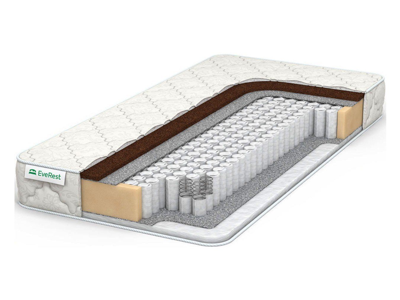 Двусторонний матрас EveRest Рестфом кокос-хол ТФК получил от производителя сразу два вида жёсткости – высокую и среднюю. Такие свойства делают модель более универсальной, поскольку позволяют соблюдать сезонность.