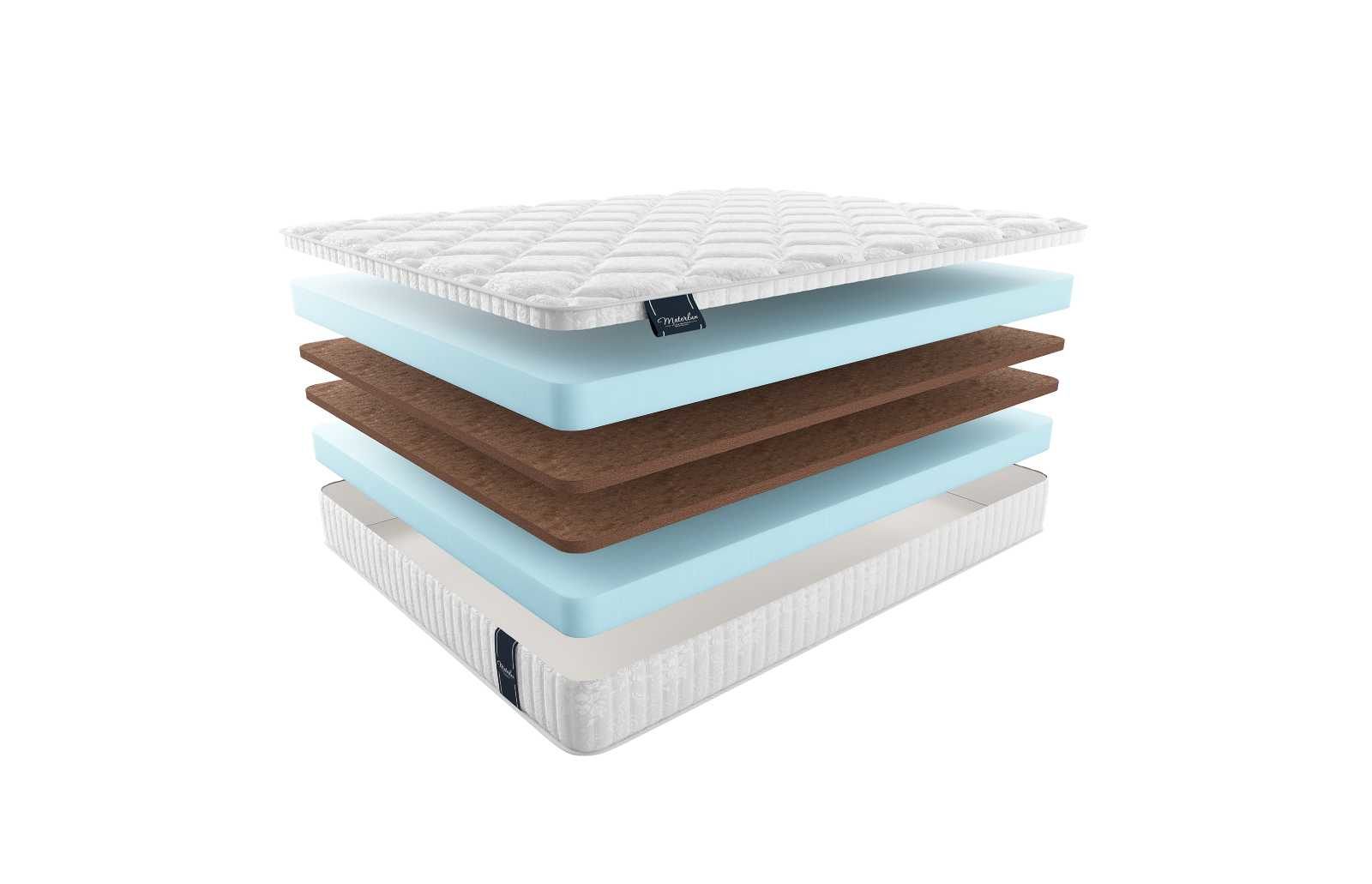 Койра кокоса располагает в центре матраса. Две плиты по 3 см скрываются в середине между блоками пены. Данный наполнитель примечателен чрезвычайно высокой жёсткостью. Материал относится к числу ортопедических, поэтому блестяще поддерживает спину в физиологически правильном положении.