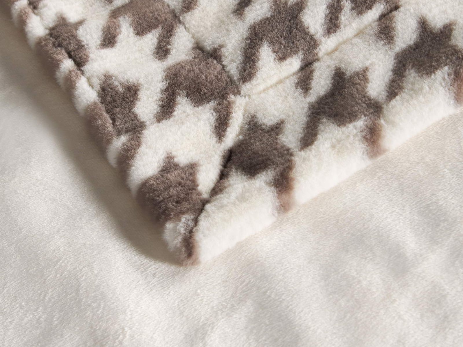 Sofi De Marko представляет вашему вниманию коллекцию Эрнесто, включающую в себя пледы и декоративные наволочки из искусственного меха с принтом «гусиная лапка».