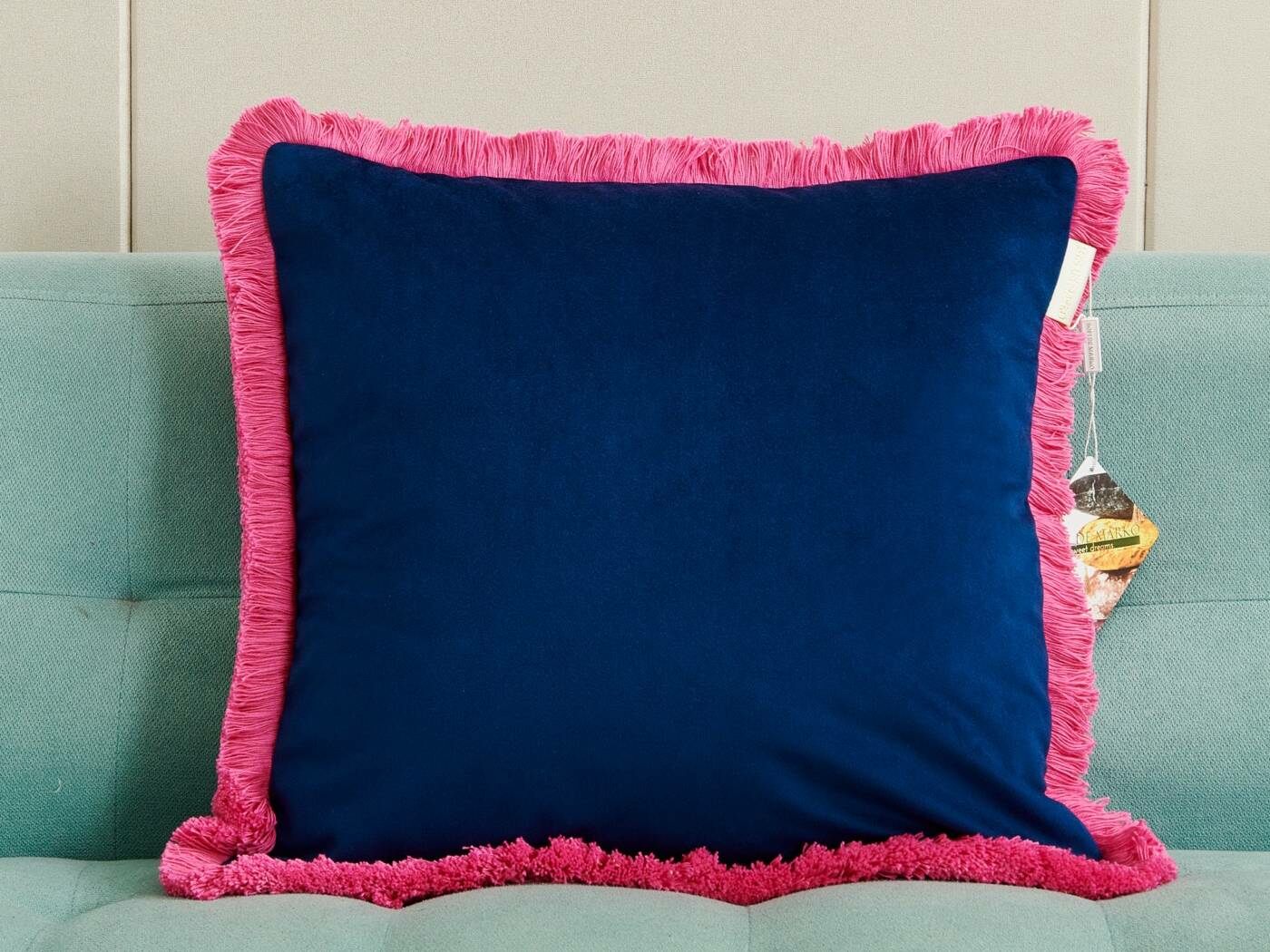 Коллекция пошита из мягкого и приятного на ощупь велюра плотностью 250г/м2. Наволочки с контрастной хлопковой бахромой добавят ярких акцентов и жизнерадостности в ваш интерьер. Большой выбор расцветок поможет расставить цветовой акцент и подчеркнет индивидуальность Вашей гостиной.