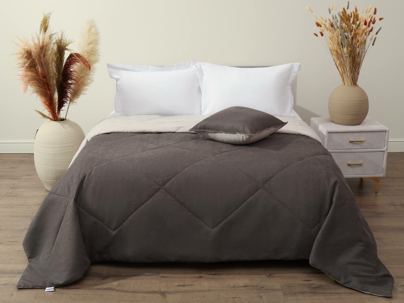 Превратите свой дом в пространство роскоши и комфорта. Откройте дверь в мир премиального уюта. Представьте себе момент, когда вы касаетесь ткани, которая словно создана для ваших рук. Коллекция «Нолан» – это именно та роскошь, которую вы заслуживаете. Каждое изделие – это произведение искусства, где безупречное качество встречается с доступной ценой. Магия бархатного прикосновения. Бархатистый канвас – это не просто ткань, это ваша новая страсть. Его изысканная текстура создает неповторимую атмосферу уюта, а премиальное качество 100% вискозы делает каждое прикосновение особенным. Инновации, которые меняют правила игры. Двусторонняя конструкция – это революция в мире домашнего текстиля. Теперь вы можете менять облик вашей спальни или гостиной, не тратя лишних средств. Два дизайна в одном изделии – это свобода выбора каждый день! Универсальная стежка «крупный ромб» станет идеальным компаньоном для любого интерьера. Классический дизайн, который никогда не выйдет из моды, подчеркнет ваш безупречный вкус.