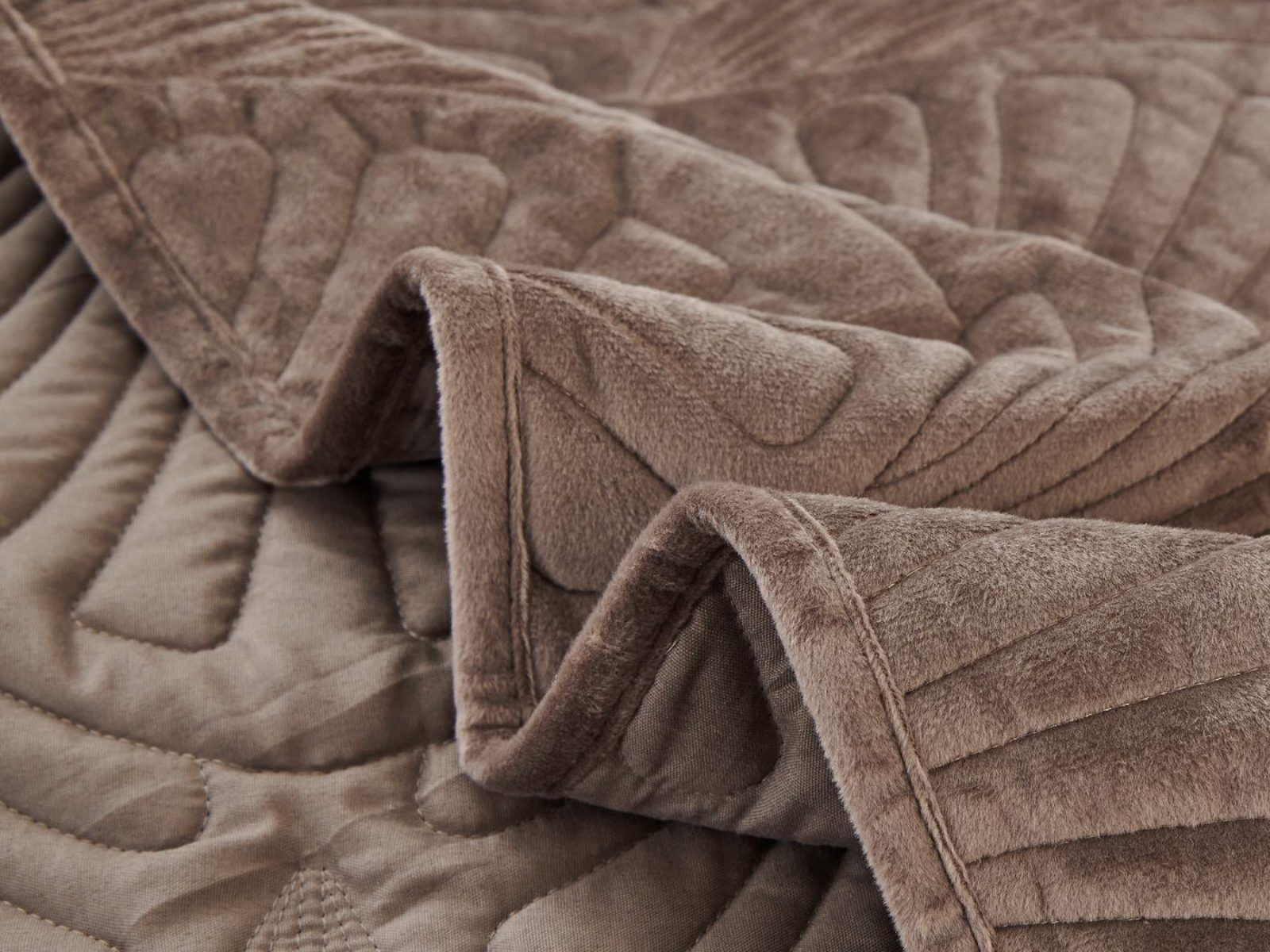 Роскошное велюровое покрывало Ариэль станет изюминкой любого интерьера, ведь оно потрясающе выглядит и приятное на ощупь. Обратите внимание на стежку покрывала – она выполнена в виде ракушек с эффектом 3D. Из-за особого плетения, велюровая ткань покрывала отражает свет и красиво переливается при различном освещении.