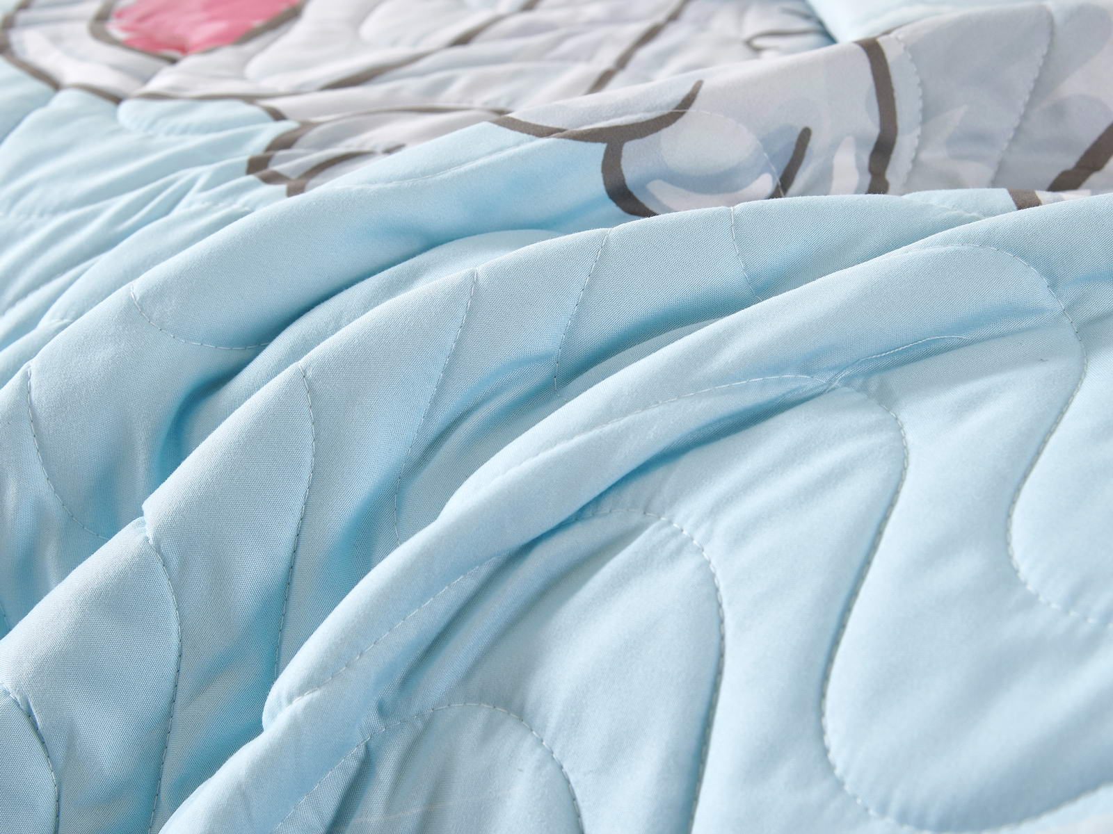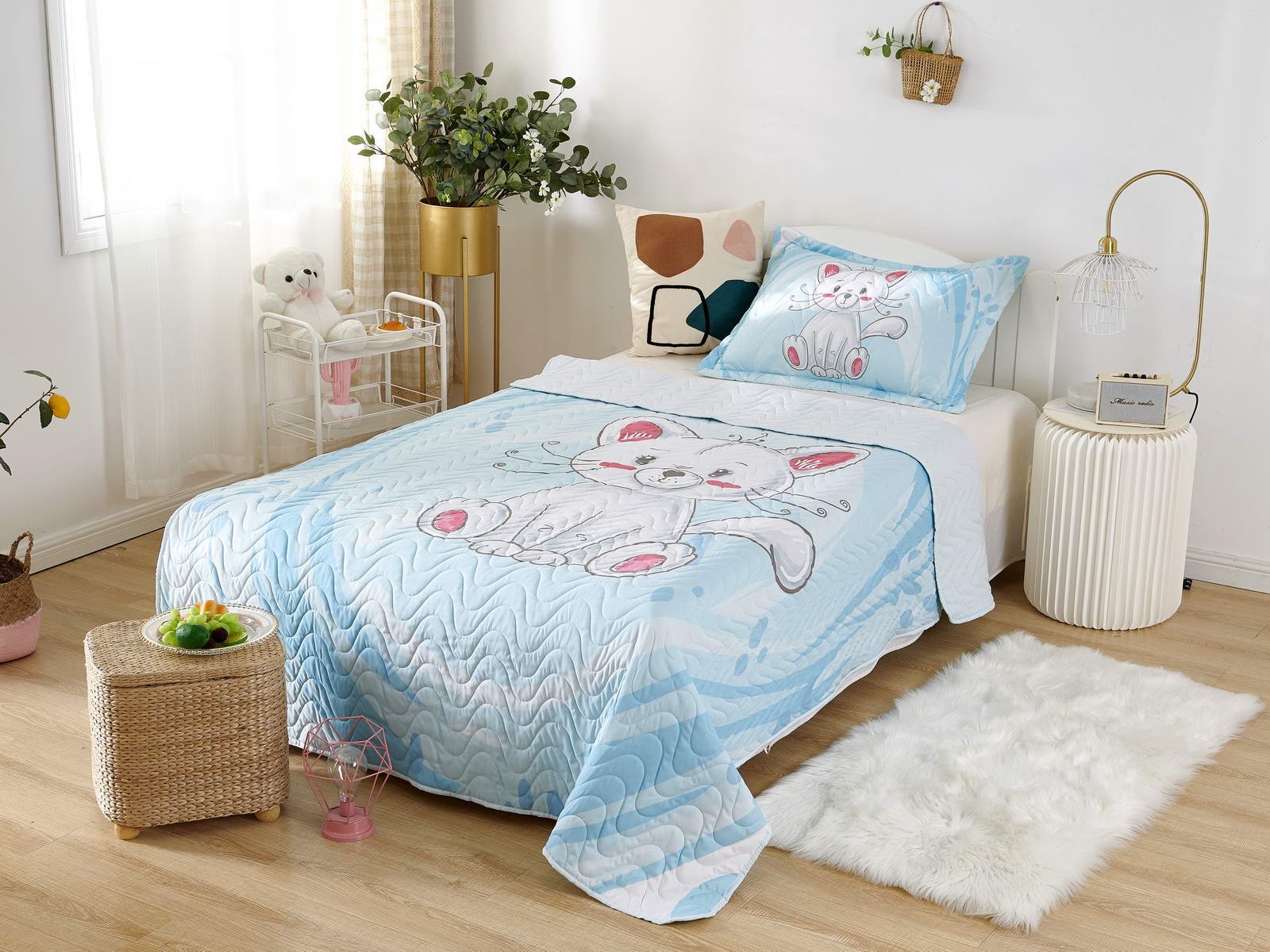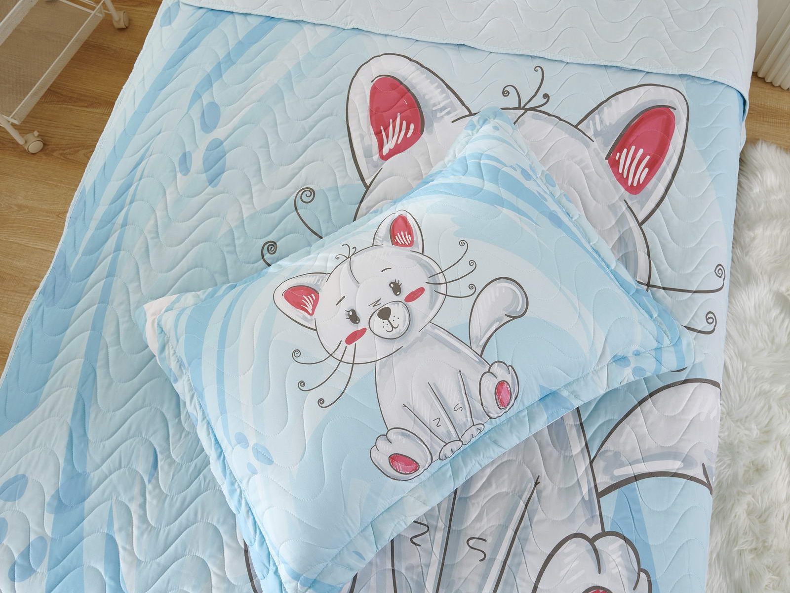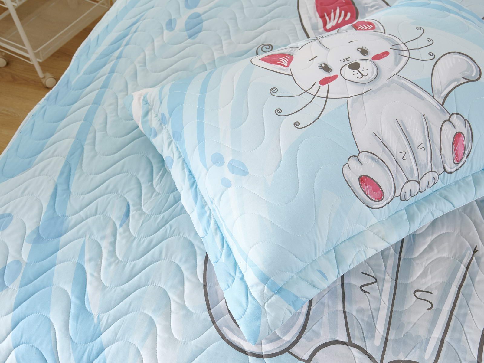 Детские покрывала - это особая забота об уюте и комфорте ребенка. Красивое, стеганое покрывало коллекции «Sunny day» придаст любой детской спальне яркую индивидуальность. Волнистые стежки делают изящные покрывала еще более выразительными и изящными. К ним в комплекте идут наволочки, у них есть интересная особенность, которая непременно понравится ребенку– небольшие ушки.